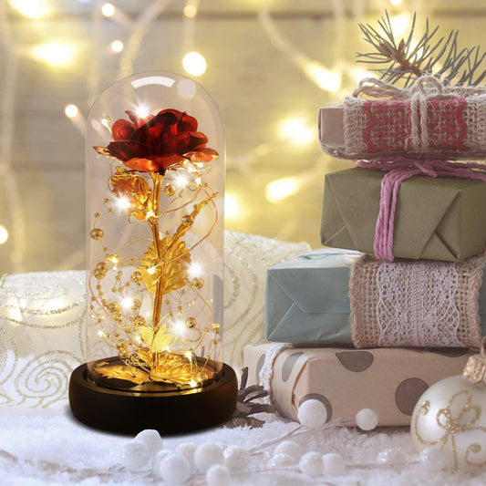 Valentines Day Gifts for Her, Beauty and the Beast Rose, Birthday Gifts for Women, Glass Dome Glowing Rose, Eternal Rose Blessing Valentine Flowers Gift for Mother Wife, or Girlfriend